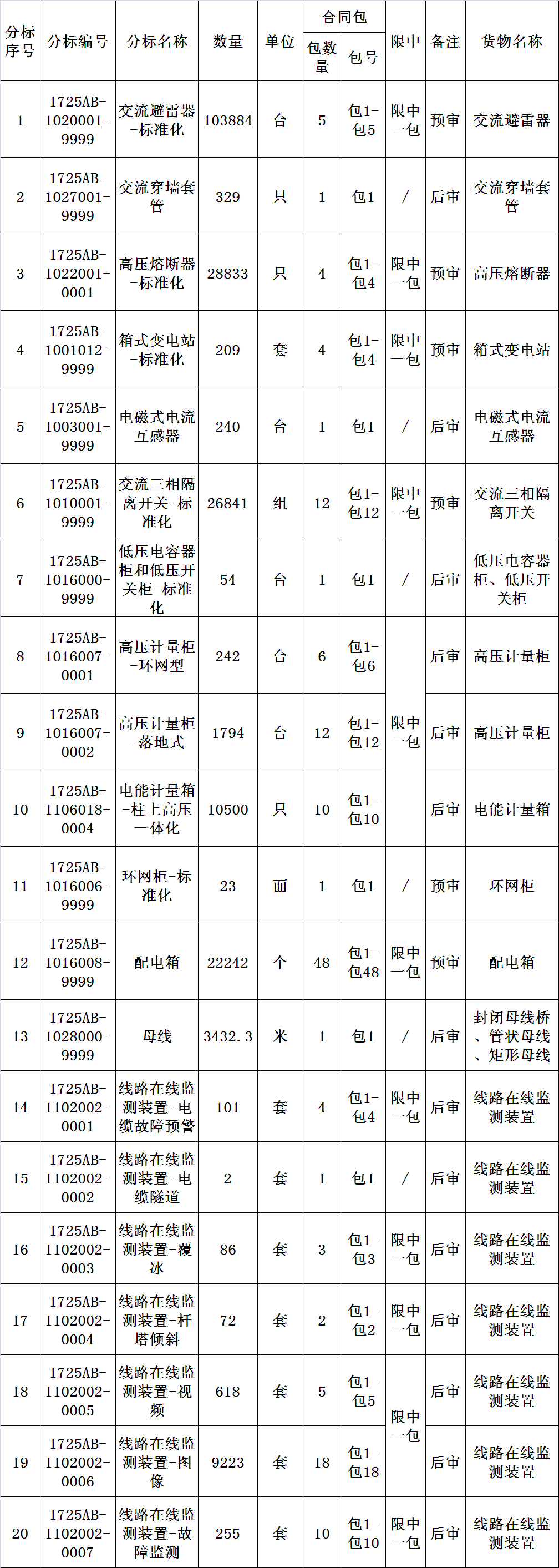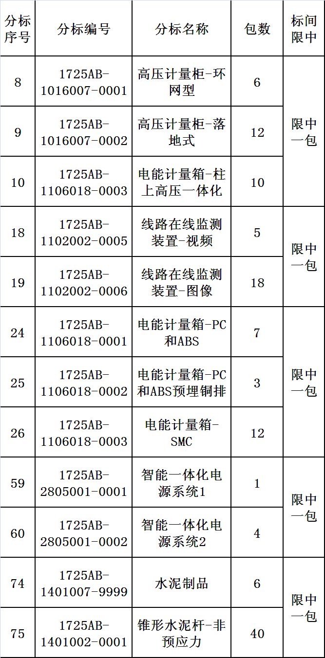 2.2说明:本次招标中,涉及标间限中的分标为: