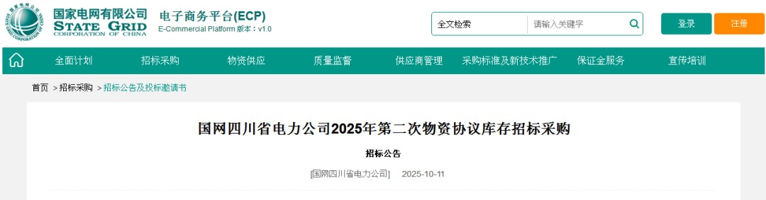 【库存招标】国网四川电力2025年第二次物资协议库存招标采购招标公告