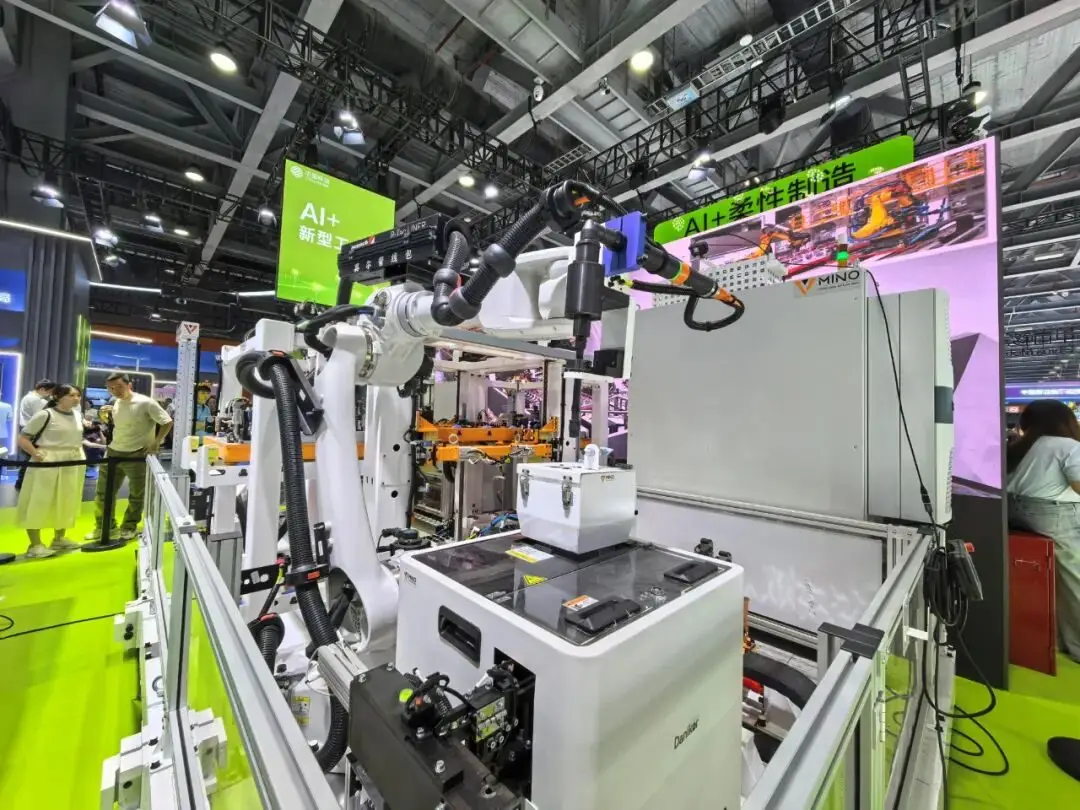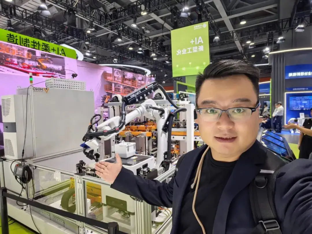 该展岛紧扣“AI+新型工业化”主题。由中国移动和广州明珞联合打造的,明珞还是中国移动投资入股的企业,像特斯拉的汽车生产都在用类似方案。跟传统“硬生产线”不一样,这个柔性产线靠AI赋能、算法和模型调整,能快速变工艺、调批次,想生产啥,生产线马上就能适配。