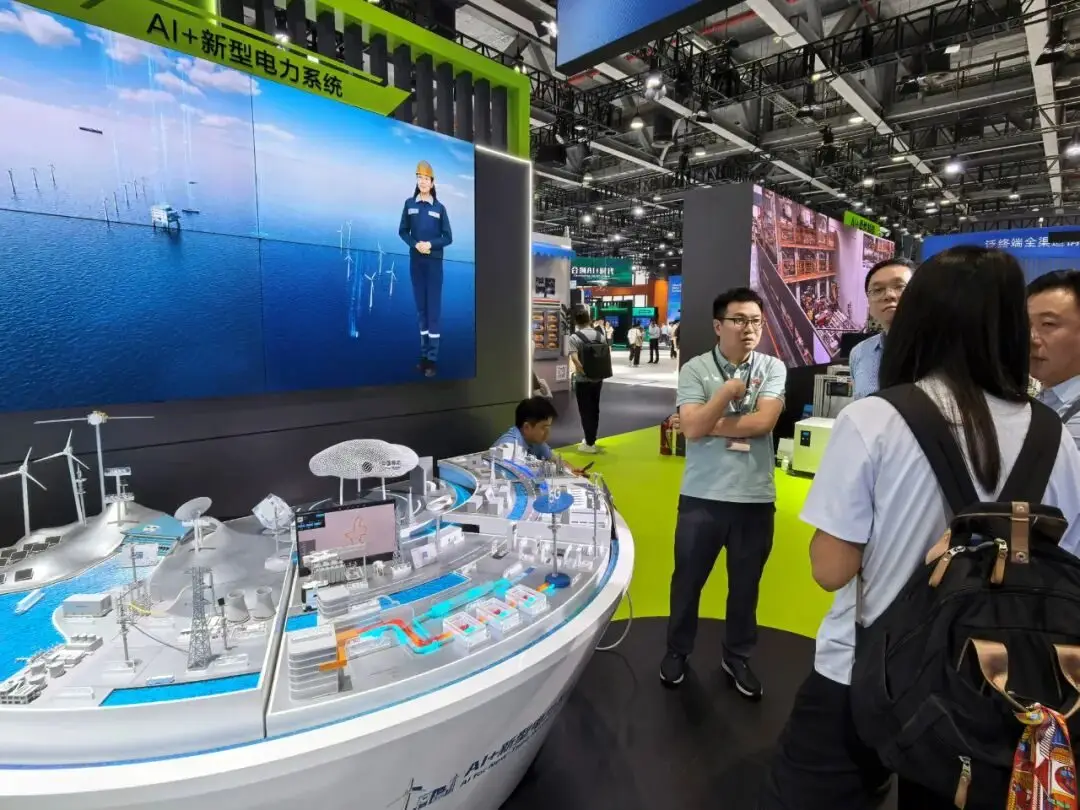 该展岛围绕“AI+信息电力系统”打造,核心是通过AI和5G赋能,覆盖电力“源、网、荷、储、碳”五大领域。