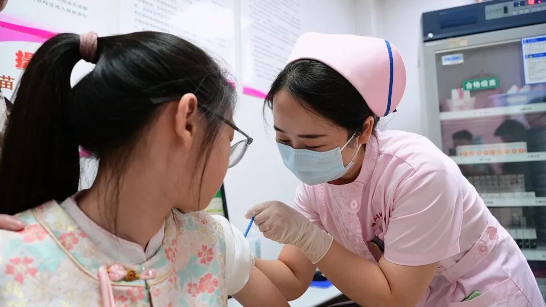 11岁女生齐齐接种国产九价HPV疫苗。