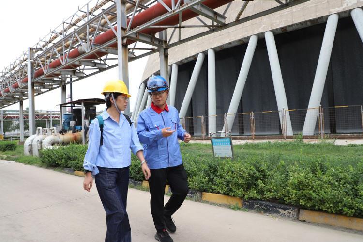 王建波(右)向记者介绍他在滨州绿能热电有限公司顶岗实习的情况