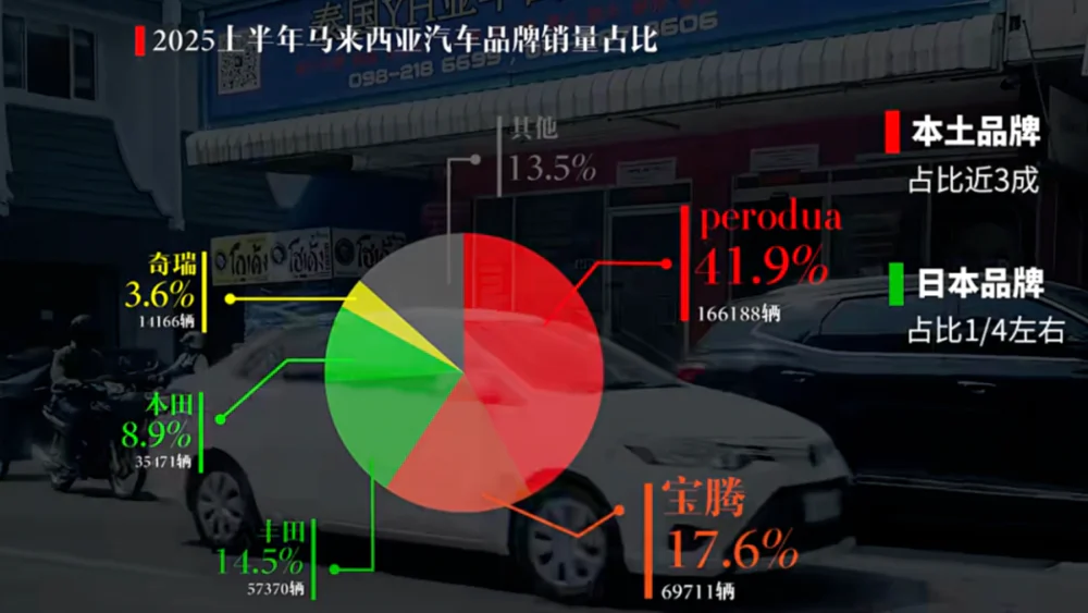 首先,马来西亚是一个产油国,加上政府还会提供补贴,所以当地的油比水还便宜。一升油折合人民币大概是3块钱,一瓶500ml的矿泉水却要6块钱。所以,在当地,燃油车消费是绝对主力——2025年上半年占比92%。
