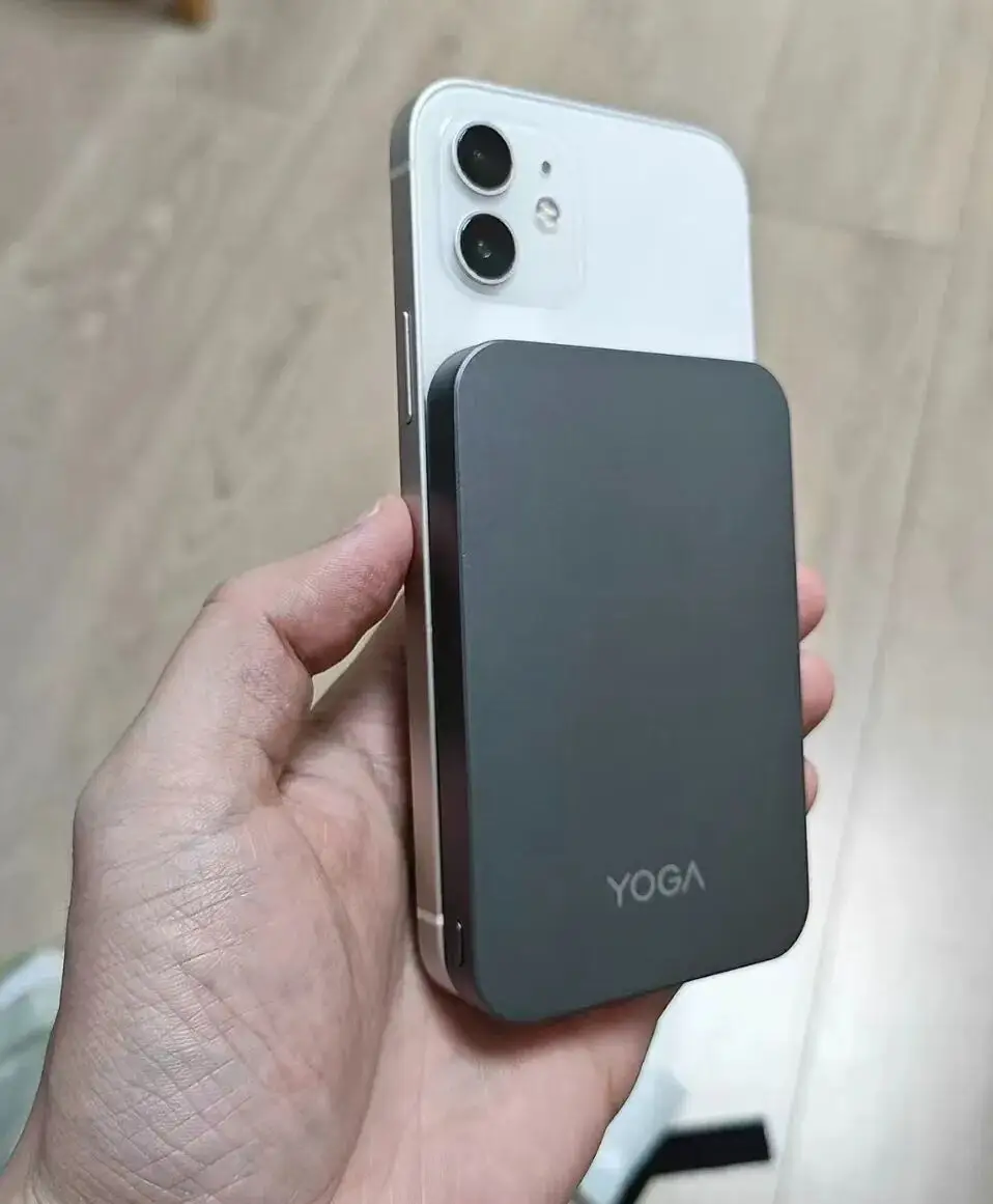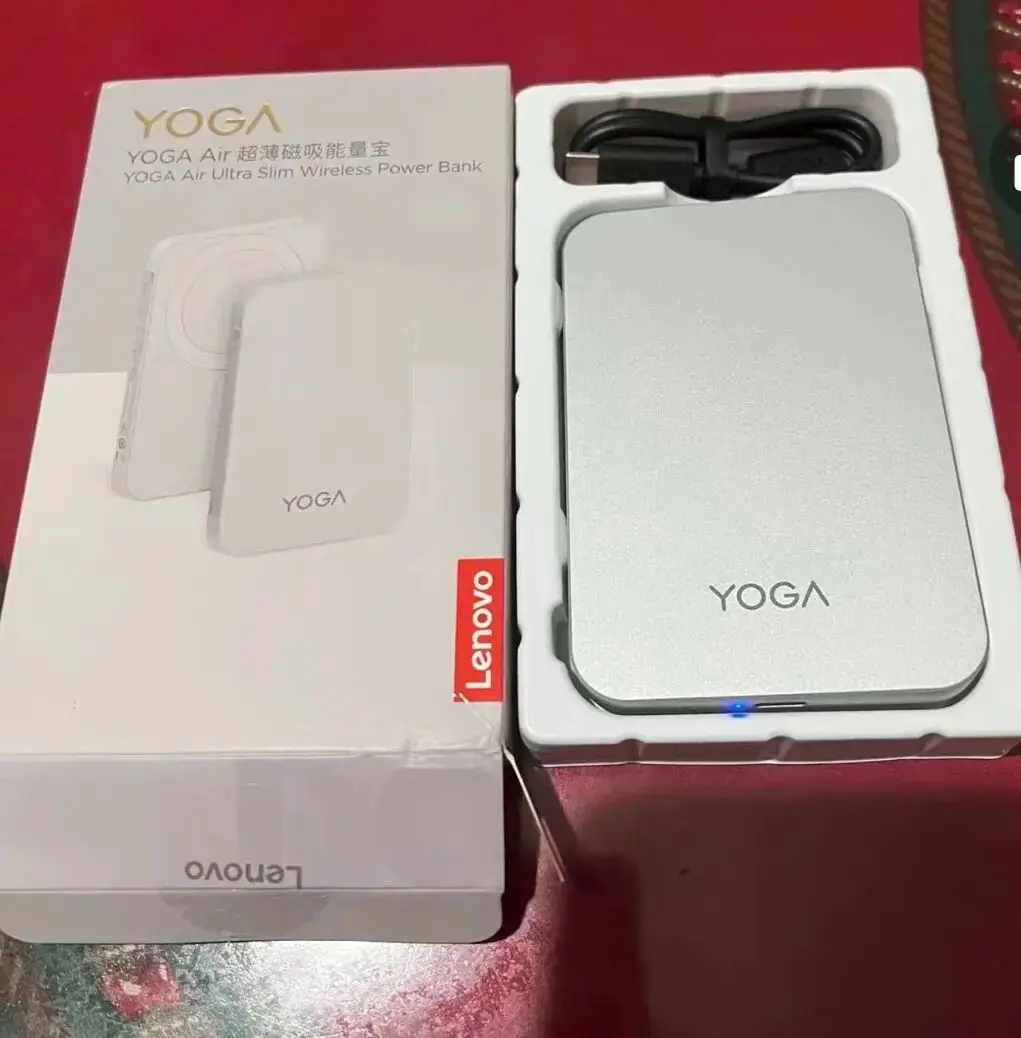 再结合用户晒单聊产品,这个产品全名叫“YOGA Air超薄磁吸能量宝”,有银色和黑色两种配色。它内置5000mAh锂离子聚合物电池,获得3C国标认证,支持20W有线充电和15W无线充电,拥有NTC温控芯片。