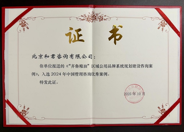 中国管理咨询优秀案例审定活动自2011年启动以来,始终承担着向国际权威奖项输送中国标杆的重要使命,其评选标准与ICMCI国际标准全面对接。此次“齐鲁粮油”案例的晋级之路,是和君品牌研究中心深耕区域公用品牌领域的实力见证!
