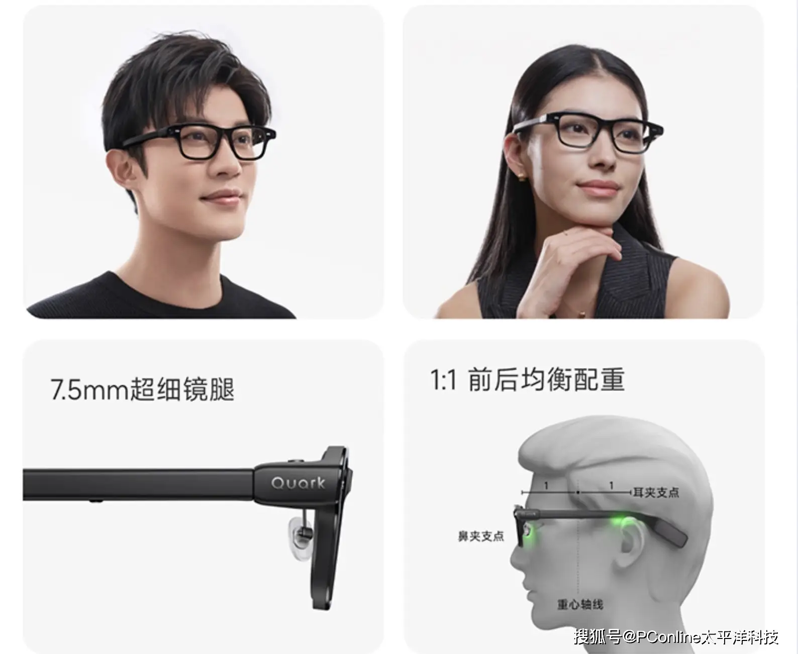 在外观设计上,这款AI眼镜下足了功夫。它采用了仅有7.5毫米的超细镜腿和超薄镜框,整机重量被严格控制在了42克。更重要的是,通过精密的结构优化,它实现了前后1:1的黄金配重。这意味着佩戴时不会有明显的前倾或后坠感,即便是长时间佩戴,舒适度依然在线。夸克的目标很明确:让它看起来、戴起来都无限接近一副普通眼镜。