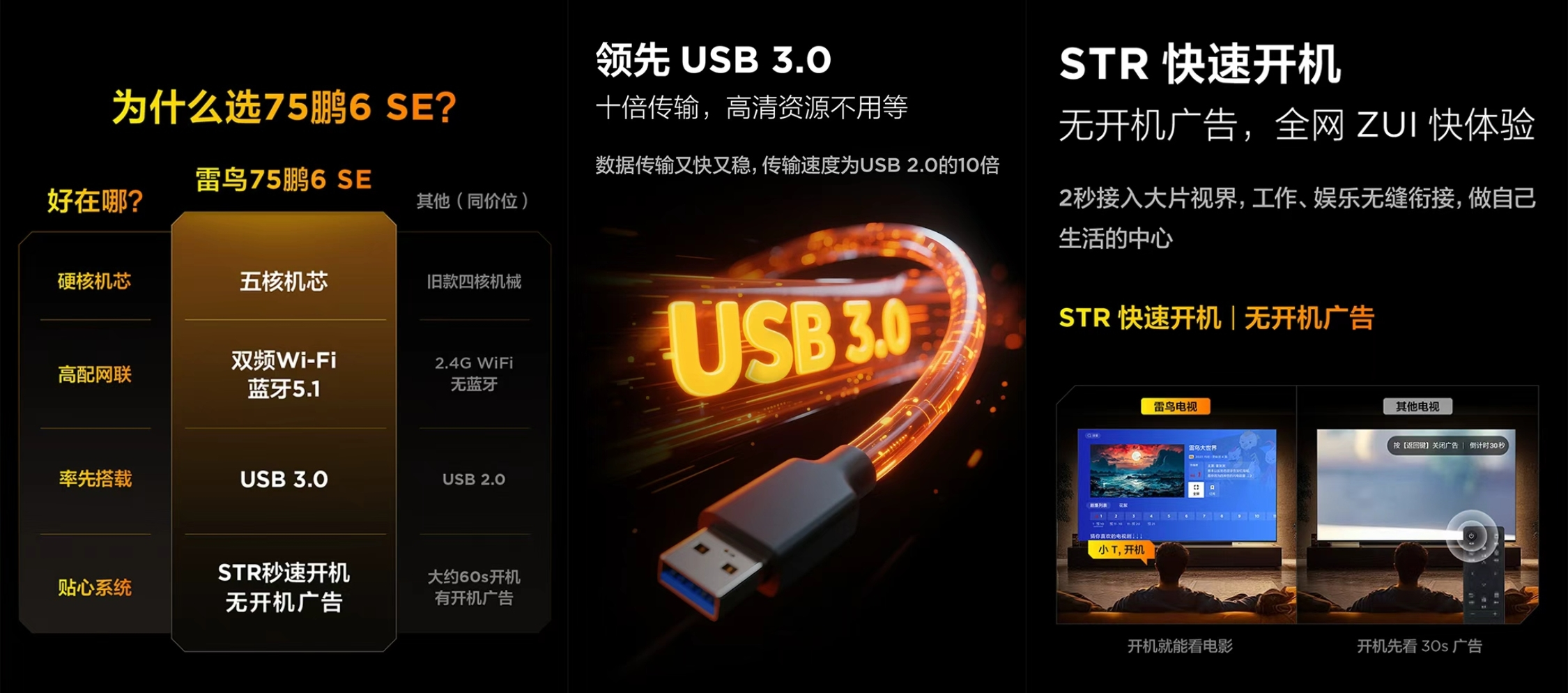 比较同价位竞品,有的虽然在部分参数上有所突出,但往往在用户体验方面有所妥协。值得一提的是,雷鸟鹏6 SE无开机广告,能够体验全网最快开机,2秒接入大片视界,工作、娱乐无缝衔接。可以说雷鸟鹏6 SE实现了配置均衡与用户体验的完美平衡,没有明显短板。