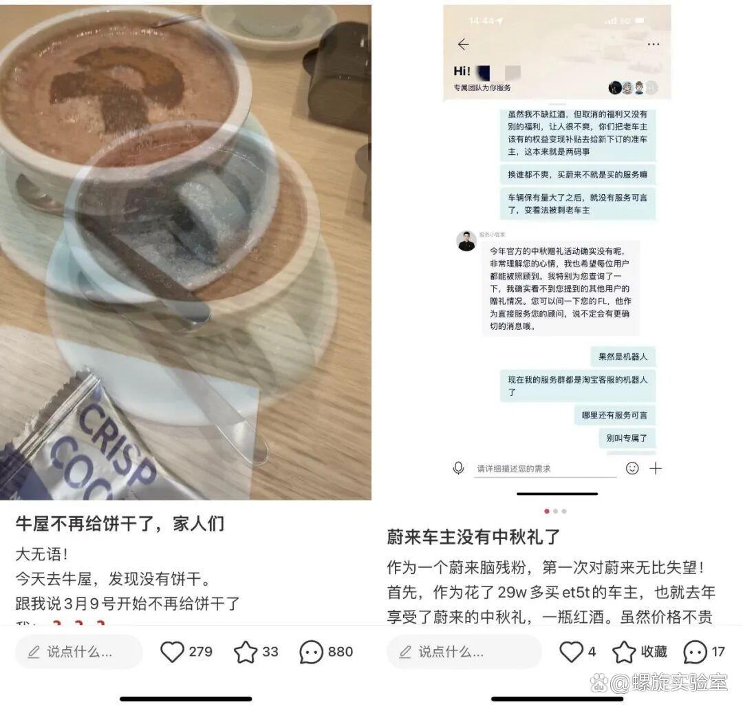 但蔚来的“降本”也并非空话,比如在今年9月,蔚来先后关闭了位于广州的两家牛屋。还有用户在社交媒体上反映,蔚来牛屋取消了零食,中秋礼物也被取消了。