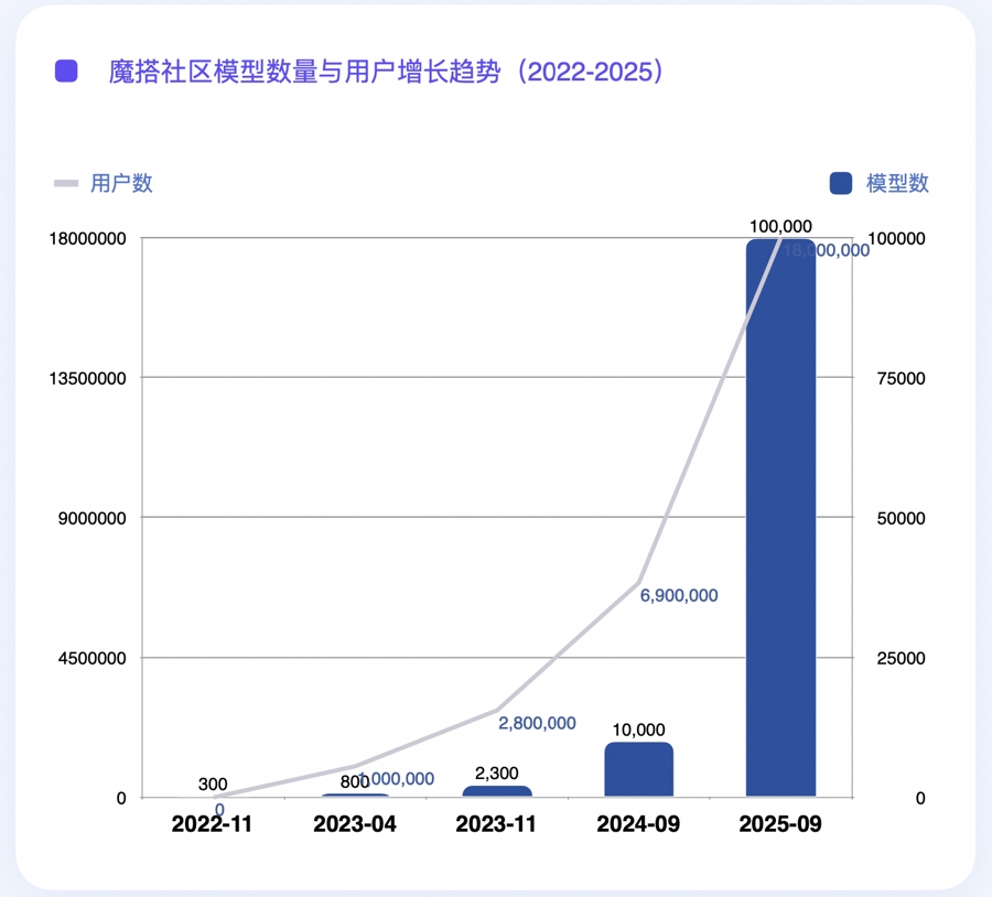 据了解,魔搭社区自2022年11月初成立以来,一直秉承“模型即服务”(MaaS,Model as a Service)的理念,为AI开发者提供模型体验、下载、调优、训练、推理、部署等一站式服务,覆盖LLM、对话、语音、文生图、图生视频、AI作曲等多个领域,已建成完整的一站式模型服务闭环生态。包括DeepSeek、百度、腾讯、阶跃星辰、MiniMax、KIMI、上海人工智能实验室等推出的业界头部模型均在魔搭社区率先开源。