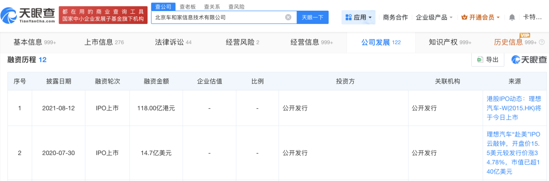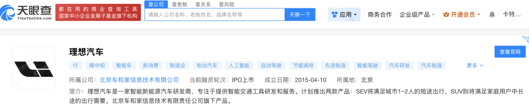 理想汽车关联公司为【北京车和家信息技术有限公司】,该公司成立于2015年,2020年7月在美国纳斯达克证券市场挂牌上市,2021年8月在香港交易所主板上市。