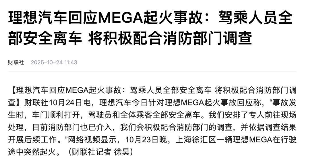 理想MEGA行驶中起火?半年3次起火事故,“安全魔咒”何解?