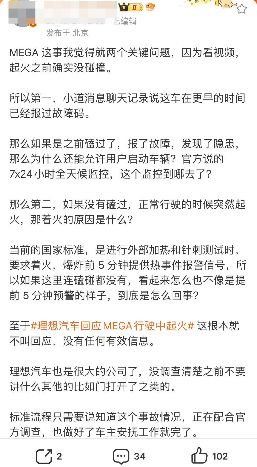 你如何看待理想MEGA的起火事故?