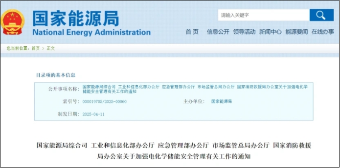 5月7日,国家能源局联合四部门发布《关于加强电化学储能安全管理有关工作的通知》,标志着储能安全管理正式上升至国家战略层面。该文件强调,按照“三管三必须”“谁主管谁牵头、谁为主谁牵头、谁靠近谁牵头”的原则,从电池安全、项目论证、标准完善等六方面构建全链条监管框架,要求项目开展安全后评价,彻底改变此前监管分散的局面。文件同时要求所有电化学储能电站项目须依法依规实施备案。