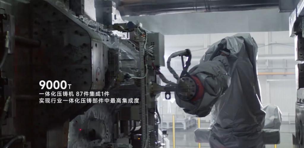 另一个重大突破是特斯拉率先应用的铸铝式一体压铸技术,让车身车间的工艺流程大幅简化。原本需要多个零件焊接拼装的车身,现在前后基本可整合为两个部件,自动化率大幅提升。
