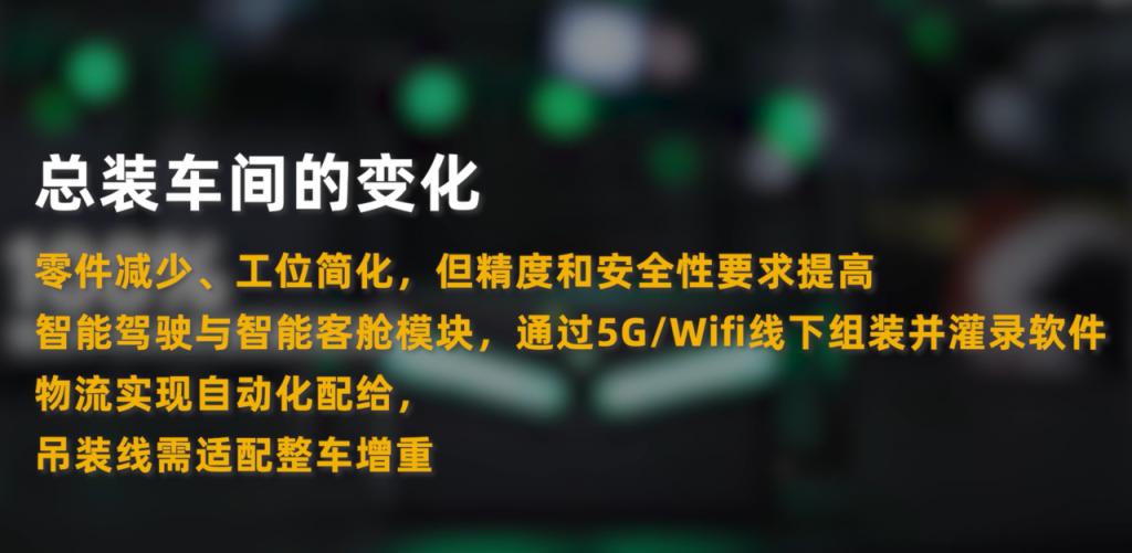 此外,总装线的吊装线需要适应整车重量增加四五百公斤的变化,移动速度也有所提升,整体呈现出工位减少、精度要求提高、安全指标升级的特点。