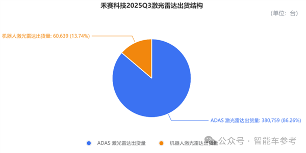 其中,ADAS激光雷达的Q3交付量为38.1万台,同比增长193.1%,环比也增长25.4%,占总交付量的86.3%。
