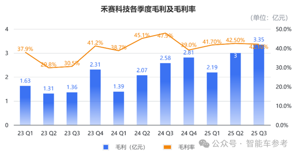 禾赛前三季度毛利为8.54亿元,综合毛利率为42.1%;第三季度的毛利为3.35亿元,对应同期毛利率为42.1%,今年基本维持稳定水平。