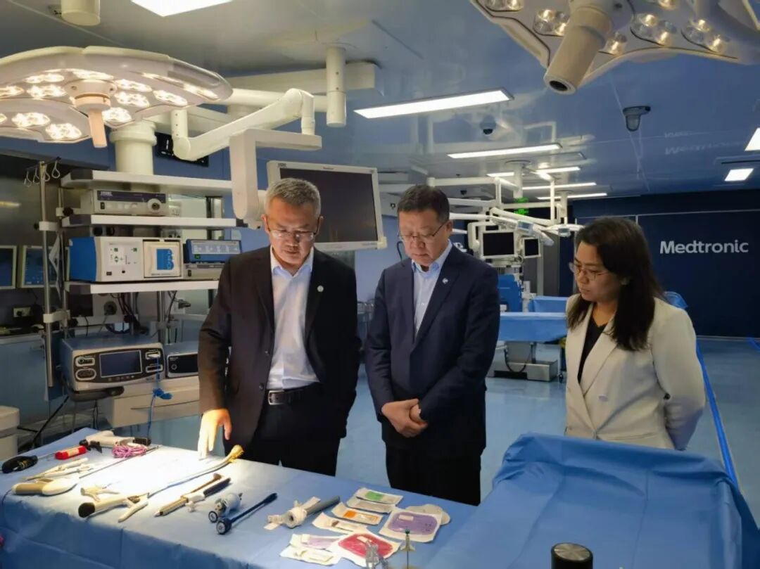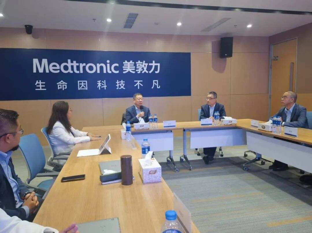 11月12日上午,公司董事长、党委书记杨光赴美敦力创新中心拜访,实地参观了研发测试实验室、模拟实验手术室、培训中心等,与美敦力大中华区商务运营服务副总裁邓坚、创新中心有关负责人座谈交流。