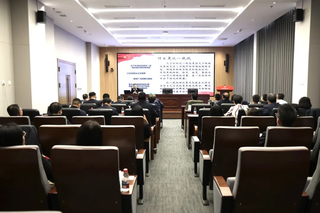 座谈交流环节结束后,会议进入专题培训阶段。天津市社会主义学院教研部副主任、教授李雯围绕《中国共产党统一战线工作条例》等政策法规开展授课,以“政策内涵+实践案例”的方式,全面解析了企业统战工作的方法思路。