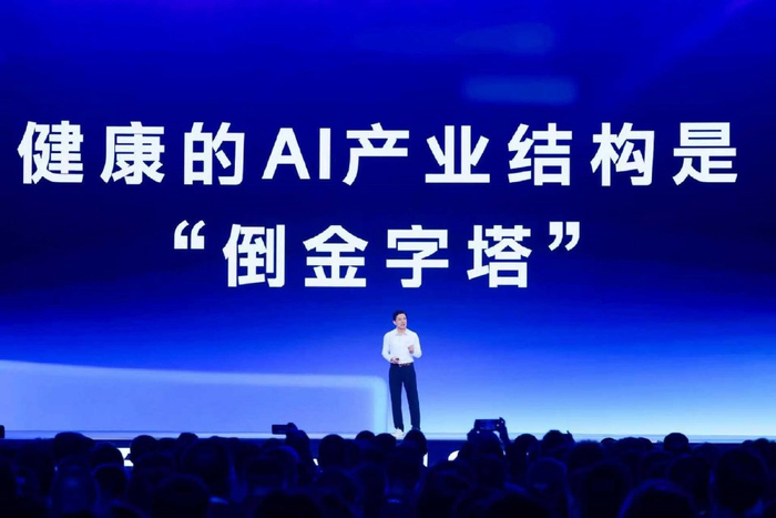 李彦宏在演讲中指出,当前AI产业结构正在发生重要转变,从过去不健康的“正金字塔”结构向健康的“倒金字塔”结构演进。过去,AI产业的价值主要集中在最底层的芯片领域,芯片之上的模型价值不足芯片的1/10,应用层价值则更为有限。这种结构因芯片不直接产生价值、应用创值能力薄弱而缺乏可持续性。