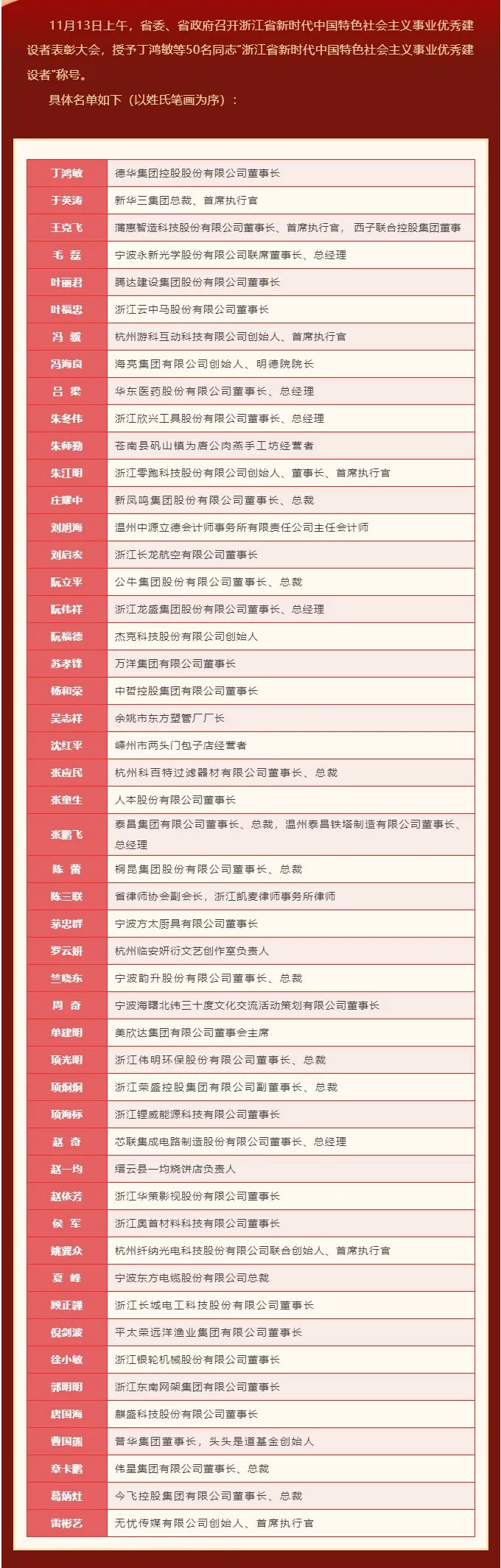 今天,浙江省委书记省长为他们颁奖!50人全名单公布