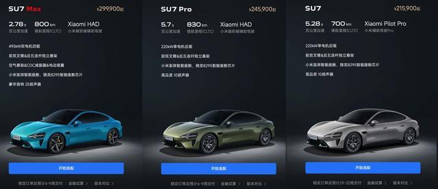 日前,小米官方突然发生了变化,售价24.59万元的小米SU7 Pro车型和售价29.99万元的小米SU7 Max车型的锁单交付时间,突然加快到了6—9周,也就是一个多月时间的水平,这可能是小米SU7去年上市之后,下单等待提车时间最短的一回。加上小米YU7之前也进行过一次较交付周期调整,整体也快了很多,所以很多小伙伴认为,这是小米汽车的产能问题已经解决了,小米汽车的“大交付”时代要来了!