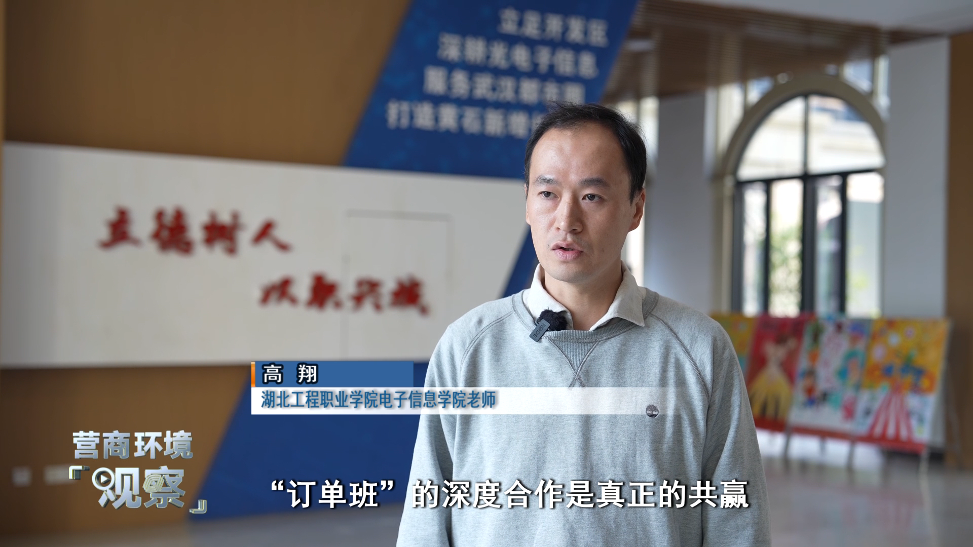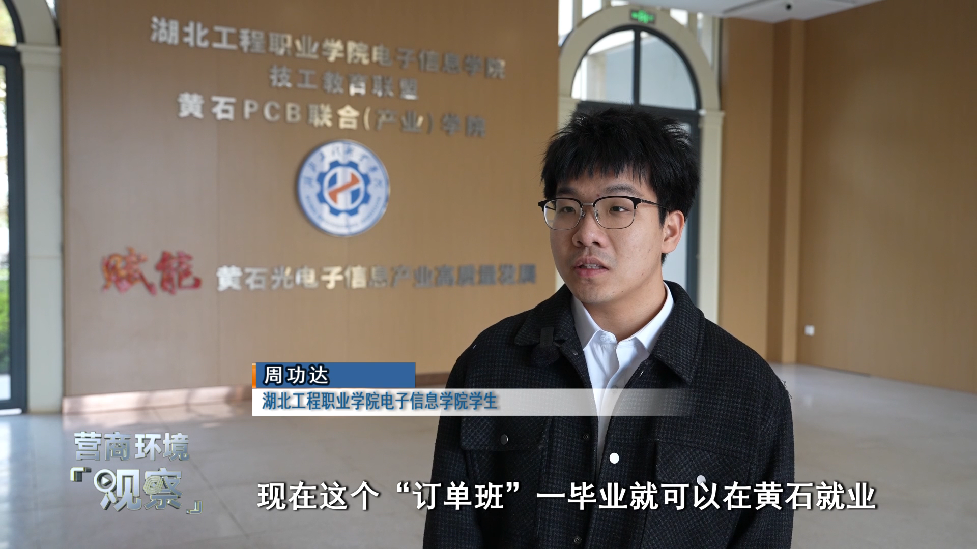 湖北工程职业学院电子信息学院学生周功达:原来觉得大专学历工作不是那么好找,需要到沿海地区去就业,现在这个“订单班”一毕业就可以在黄石就业,前景和待遇都不错,感觉心里更踏实了。