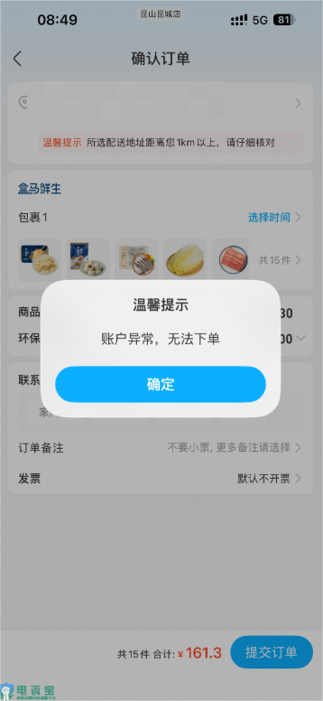 【案例三】用户投诉盒马APP无故提示账户异常无法下单客服未能给出原因与解决方案