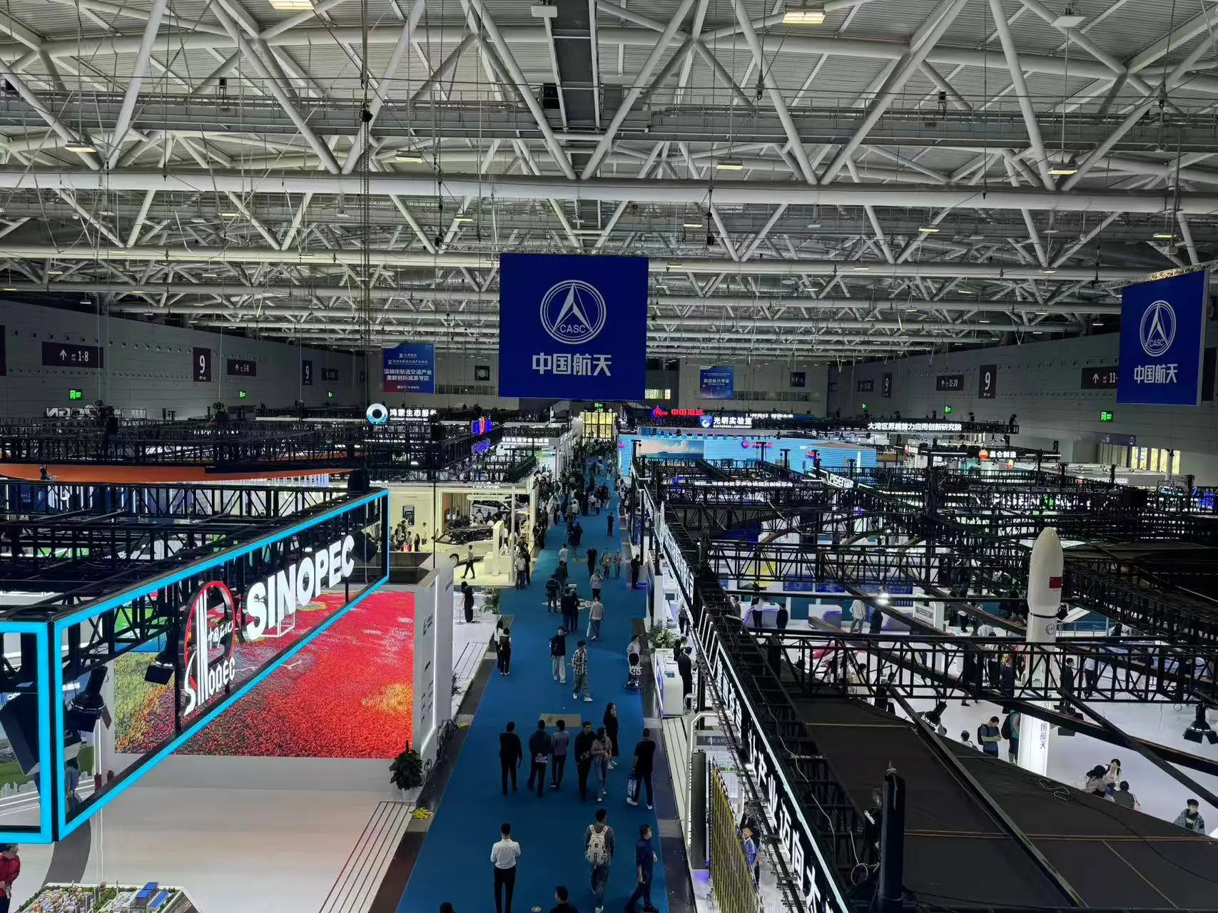 据了解,整个9号馆是备受关注的国之重器、科技巨头产业链展区。一大批对国家安全和科技创新具有重大意义的技术与产品藏身其中,涵盖航空航天、高端船舶与海洋工程装备、重大科学仪器设备、能源装备制造、智能制造、大型工程装备等。展区内集结了中国航天、中国石化、中国海油、比亚迪、荣耀、品胜、鸿蒙智行、中国科学院深圳先进院、光明实验室、深圳地铁、深圳航空等知名企业和机构。