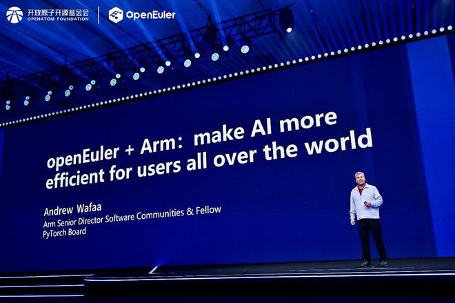 Arm Fellow、软件社区高级总监、PyTorch基金会董事的Andrew Wafaa表示,Arm公司在提升技术能力的同时,确保相关技术能够兼容开源欧拉社区,持续深耕AI的产业共建。