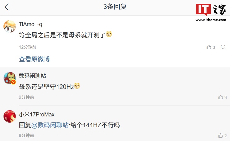 值得一提的是,博主透露,母系品牌还是坚守 120Hz。