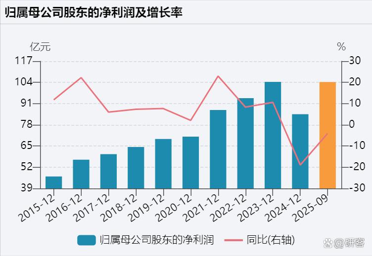 毕竟,2023年至2025年前三季度, 伊利 营收增幅分别为2.4%、-8.2%、1.7%,利润波动较大情况下,营收也在波动,这“气质”已经不是快消公司,而是向周期公司看齐。