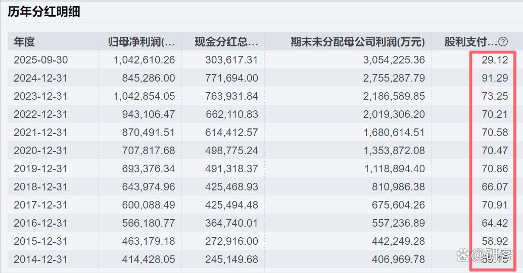 再仔细分析,虽然分红下限已锁定,但上限应该也没法突破。2024年, 伊利 每股分红1.22元,分红率为91%,创下历史新高。