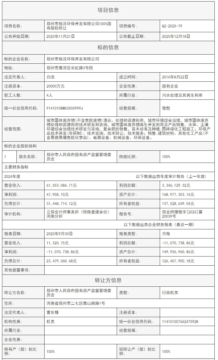 一、减轻国企负担,优化财务报表:根据报道,这两家公司原先归属于郑州公用事业投资发展集团。在划转前,该集团明确表示,此举将减轻公司的折旧及运维费用负担,提升整体利润水平。尤其是对于格沃环保这样近期出现亏损的企业,将其从集团剥离有助于防止其拖累整体业绩。