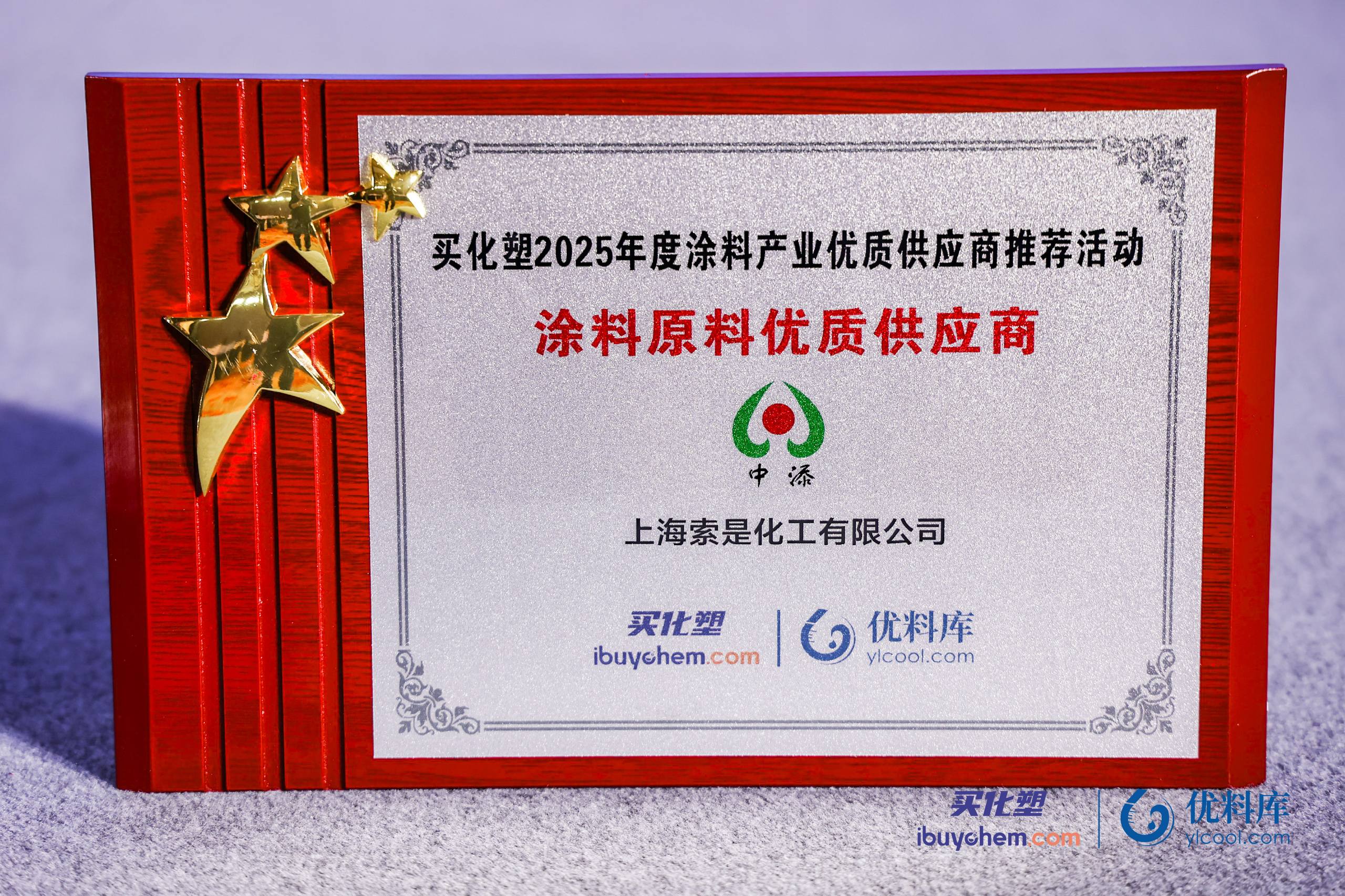 索是化工荣膺“2025年度涂料原料优质供应商-助剂溶剂”大奖