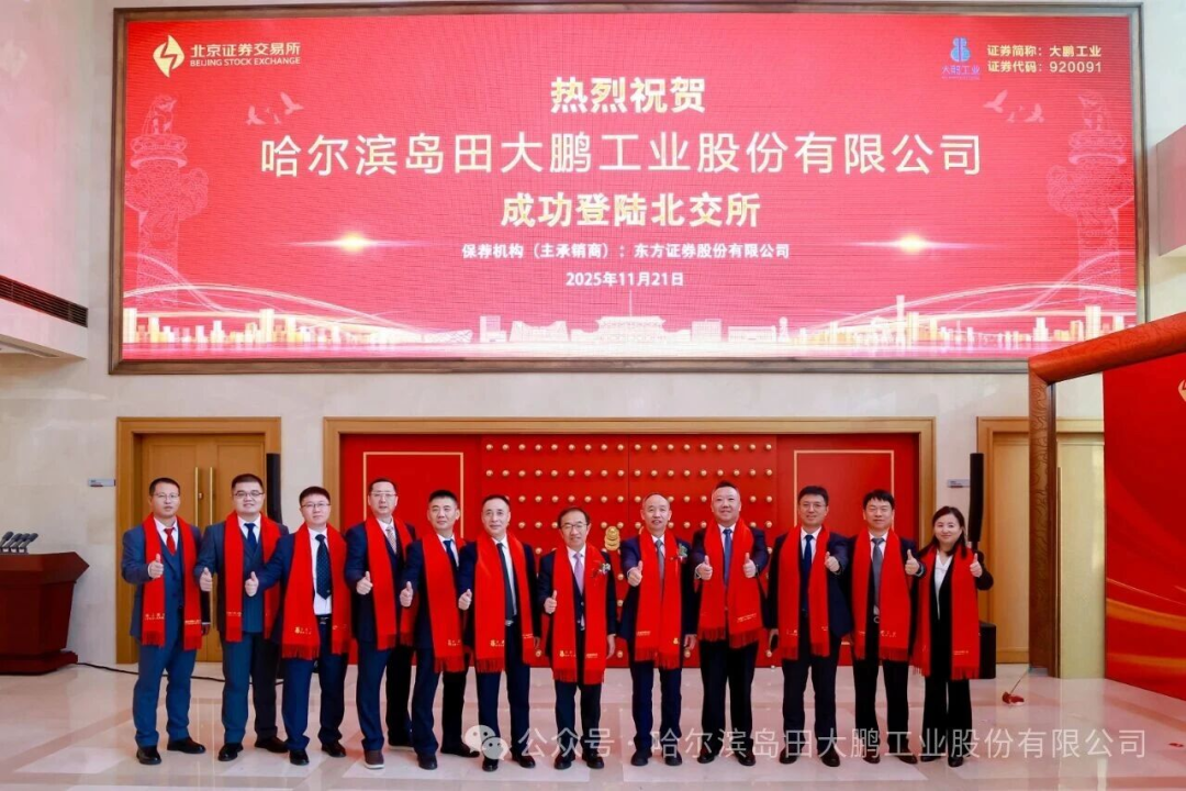 11月21日,哈尔滨岛田大鹏工业股份有限公司(以下简称“大鹏工业”)正式敲钟上市,成为黑龙江省首家登陆北交所的企业。