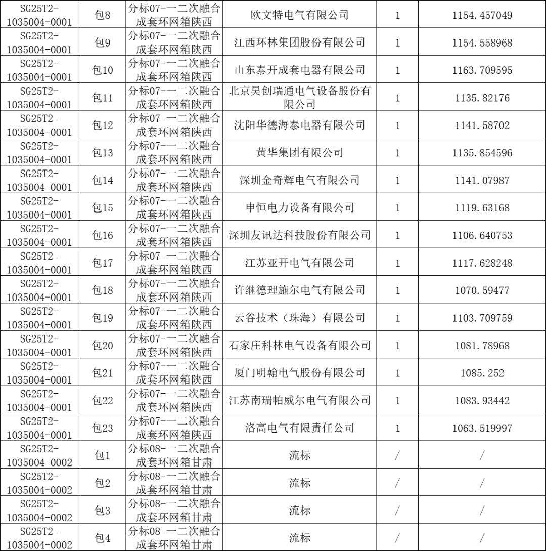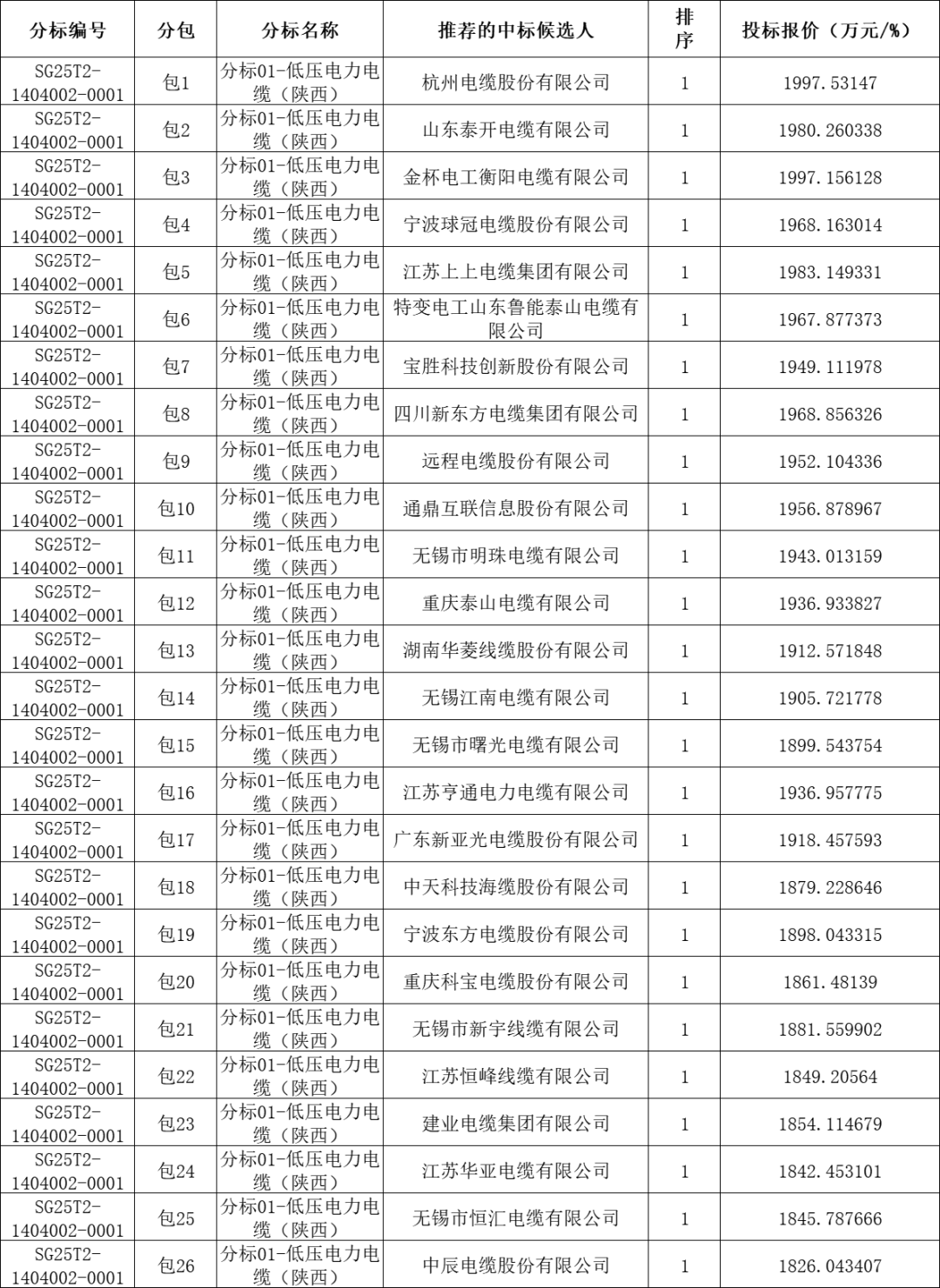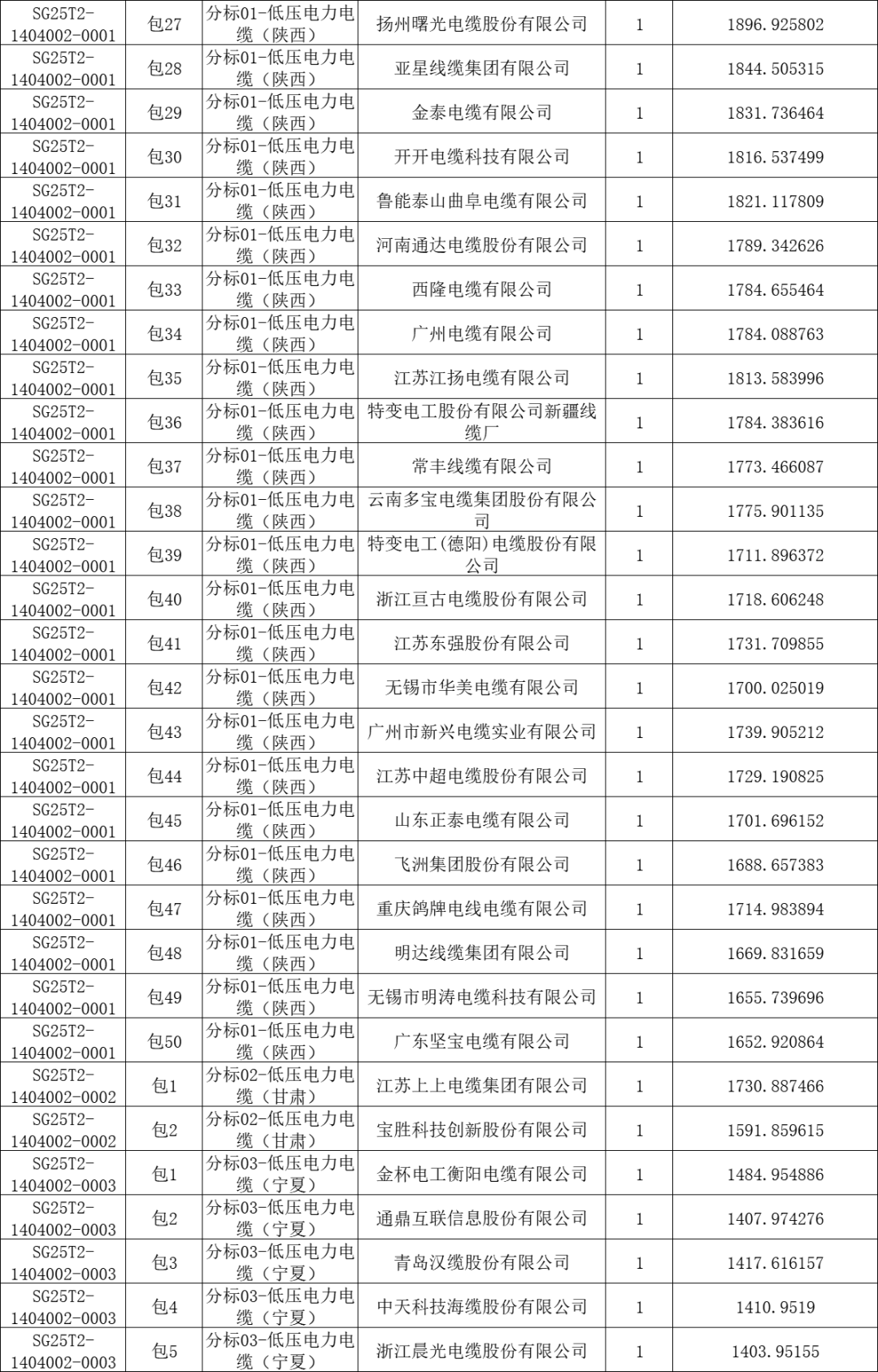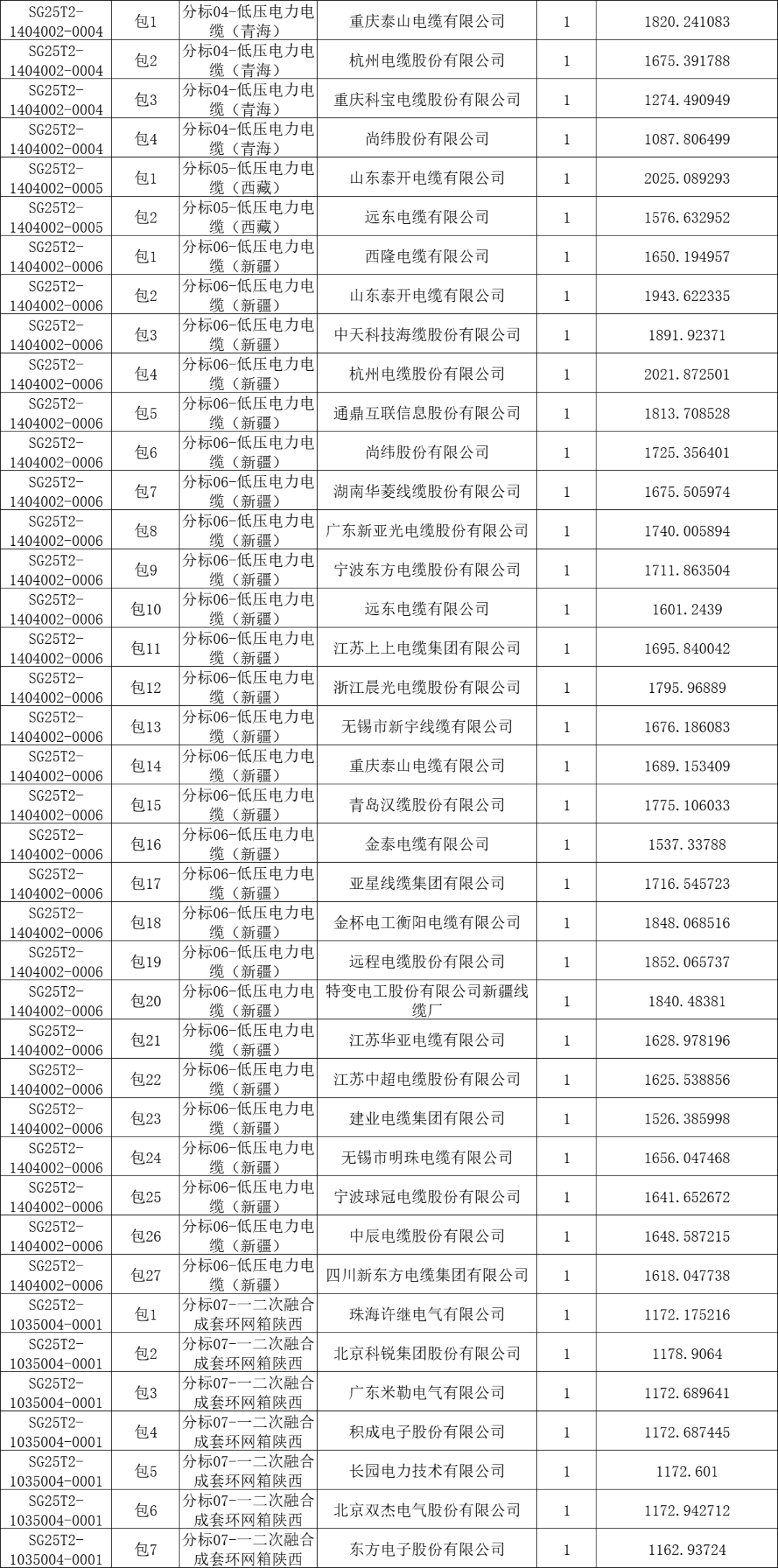 中标排名!国网2025西北、西藏区域第二次联合采购低压电力电缆、一二次融合成套环网箱/断路器协议库存推荐的中标候选人公示