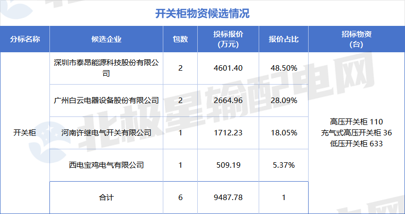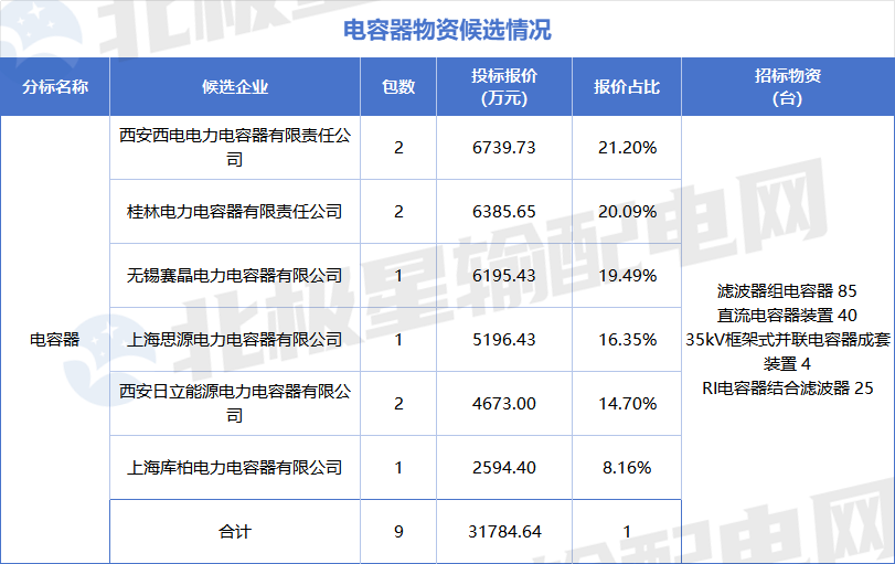 中国西电旗下有9家企业入围,分别是常州西电变压器有限责任公司、西安西电电力系统有限公司、西安西电变压器有限责任公司、西安西电高压开关有限责任公司、西安西电开关电气有限公司、西安西电电力电容器有限责任公司、西安西电避雷器有限责任公司、西安西电高压套管有限公司、西电宝鸡电气有限公司,投标报价共计约298475.83 万元。