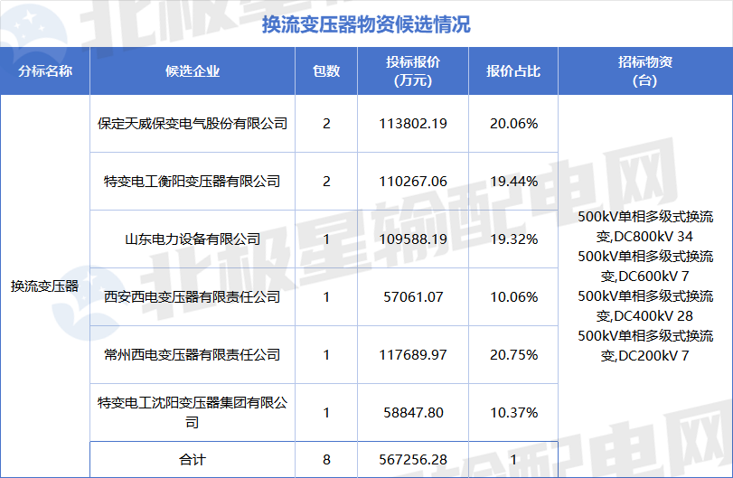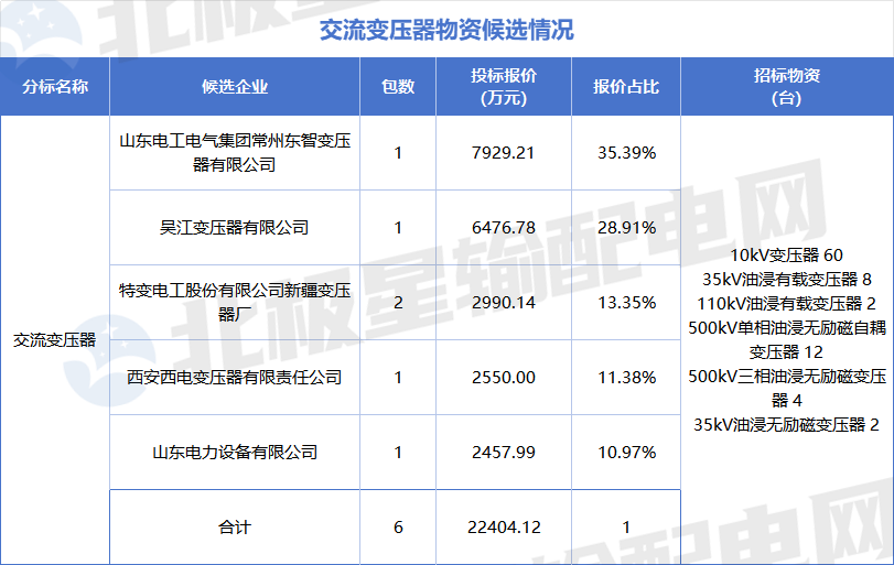 特变电工旗下有5家企业入围,分别是特变电工衡阳变压器有限公司、特变电工新疆新能源股份有限公司、特变电工沈阳变压器集团有限公司、特变电工股份有限公司新疆变压器厂、特变电工康嘉(沈阳)互感器有限责任公司,投标报价共计约243548.74 万元。