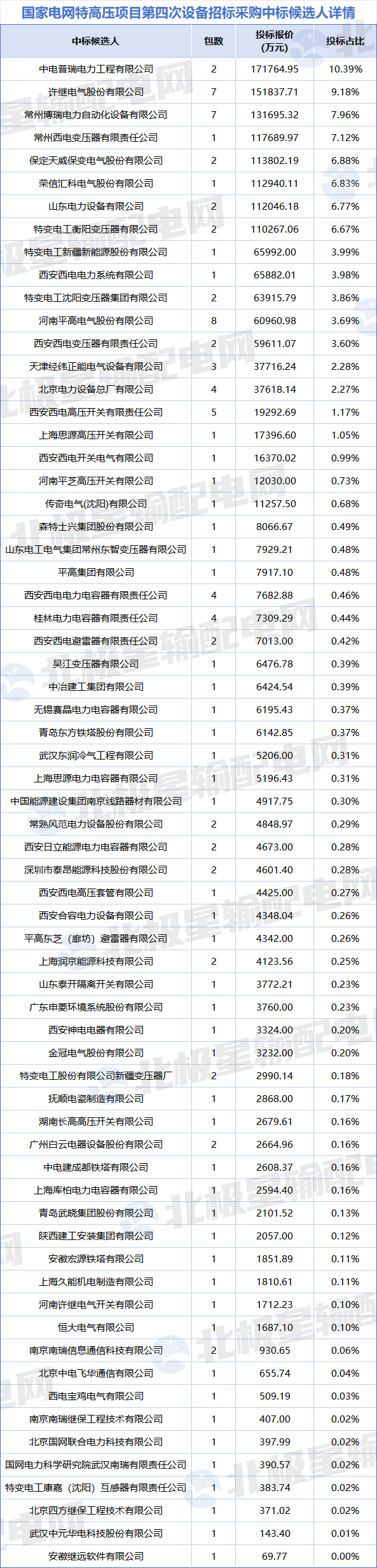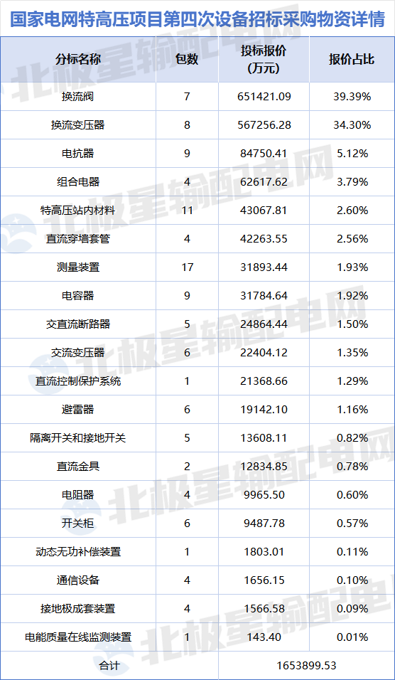 165.39亿!国网特高压项目第四次设备招标采购中标分析