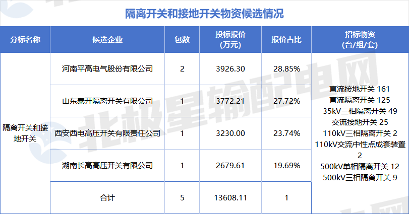 平高电气旗下有3家企业入围,分别是河南平高电气股份有限公司、平高集团有限公司、平高东芝(廊坊)避雷器有限公司,投标报价共计约73220.08万元。