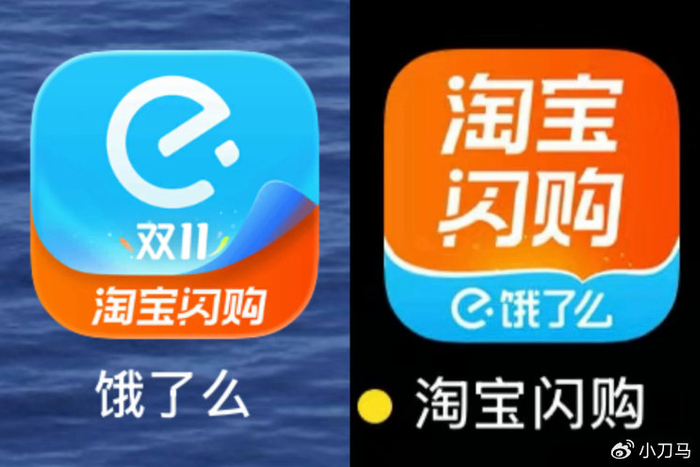 其中,饿了么APP版本更新至12.0.1后,已变更名称为“淘宝闪购”,APP图标中心位置为橙色的“淘宝闪购”字样,底部是字号较小的“饿了么”。与之前的APP图标相比,“淘宝闪购”和“饿了么”字样互换了位置,颜色也进行了调换。