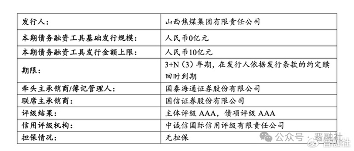 公告显示,焦煤集团计划于2025年11月21日发行第八期永续中期票据,注册金额上限10亿元,期限为3+N年,由 国泰海通证券 担任主承销商,该项目已于2024年9月13日获交易商协会注册通过。