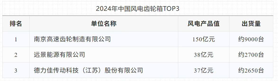 本次大会同步正式发布的2024年全球风电齿轮箱出货量排名显示, 南高齿 、远景能源与 德力佳 位列前三名。其中, 南高齿 在风电齿轮箱订单量和市占率保持持续领先,2024年全年出货量约9000台, 德力佳 持续优化生产工艺和质量体系,2024年全年出货量约2650台。