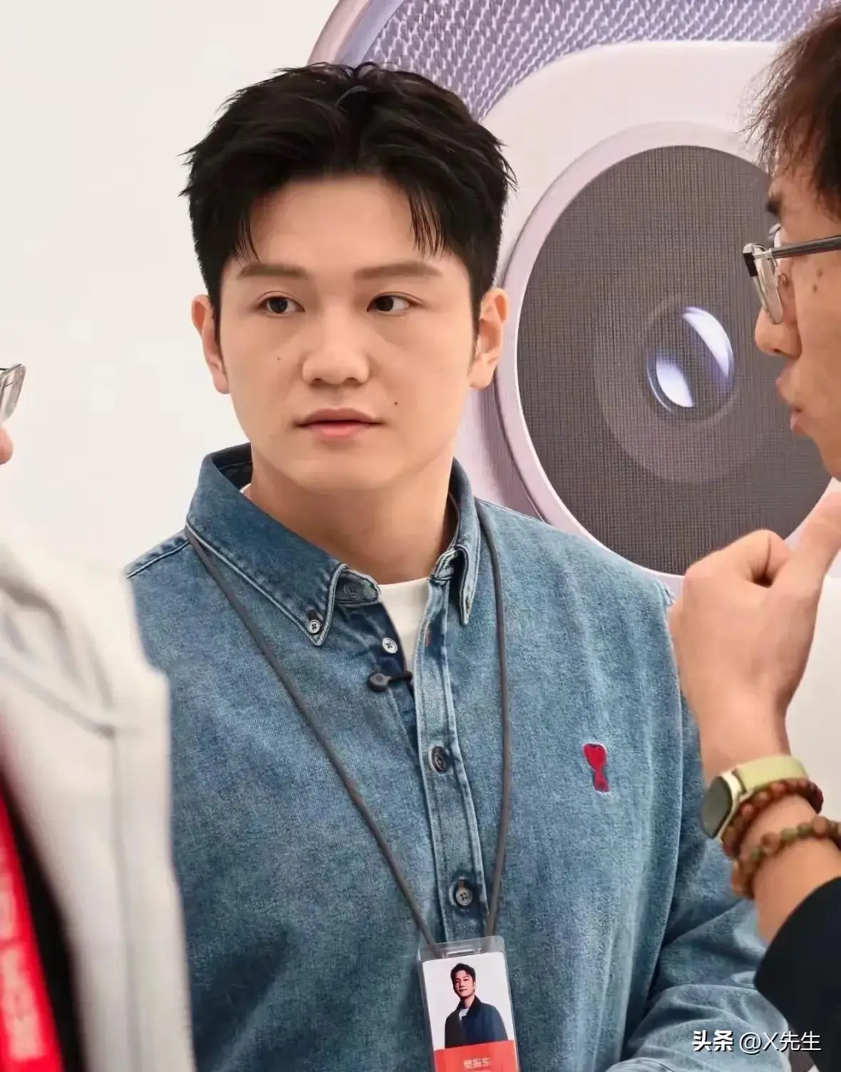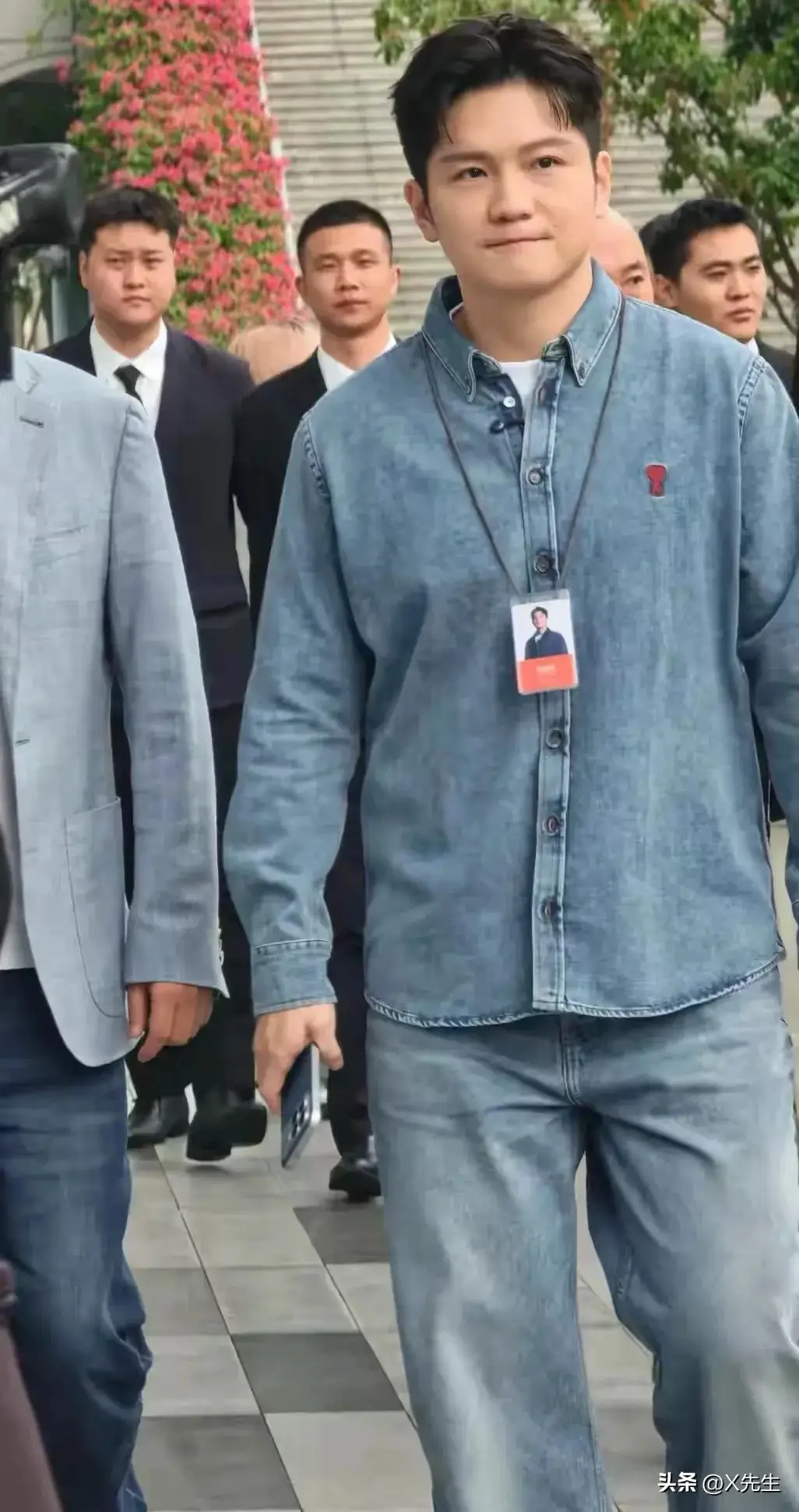 樊振东当天还穿了一身蓝色的牛仔套装,刚刚好和手上的手机颜色一模一样