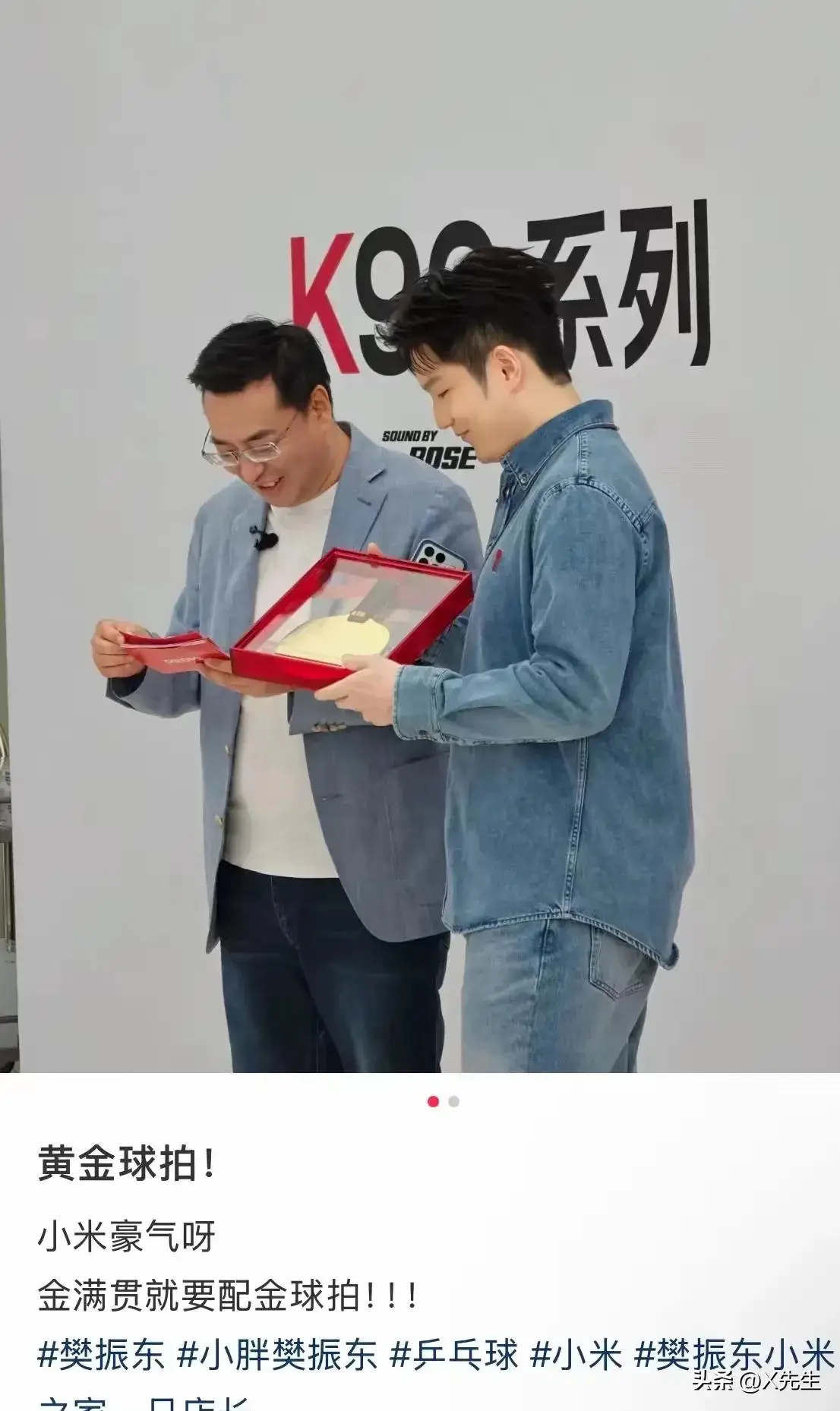 如今雷军用定制金球拍号赠,既呼应了樊振东的全满贯荣耀,也让商业合作多了份人情味