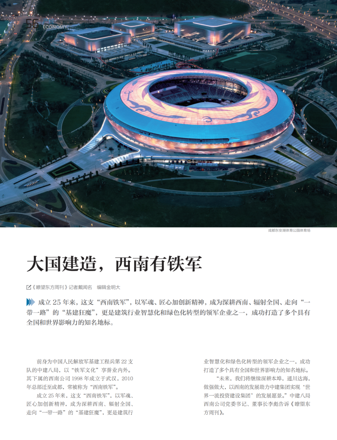完美呈现25周年司庆活动及企业文化节,精心推出《中建八局西南公司志》等文化产品,以文化认同凝聚发展共识。公司绿色低碳实践、服务地区成效获《瞭望周刊》专题报道,品牌势能不断累积。