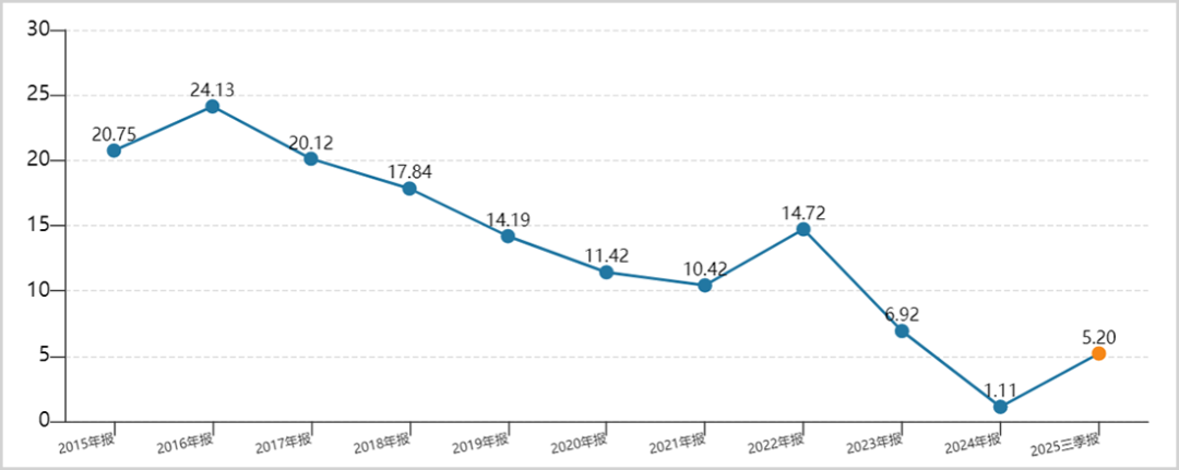 归母净利润虽在2024年及2025年前三季度实现双位数增长,但扣除非经常性损益后,已连续近两年下滑,今年前三季度降幅更是接近10%。