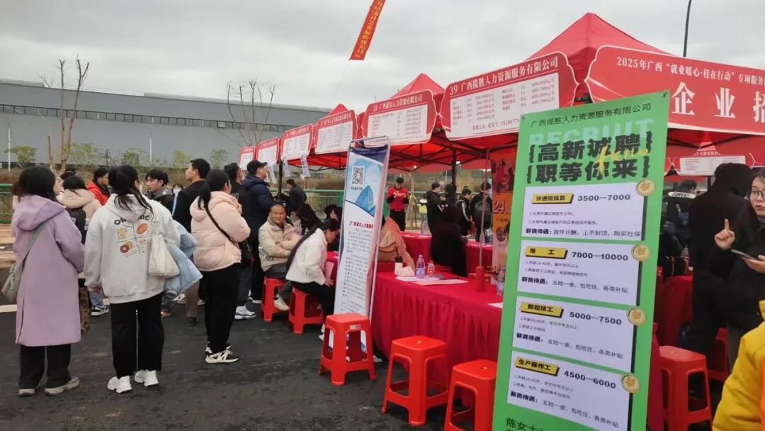 ▲2月7日,广西“就业暖心.桂在行动”专项服务活动暨重点产业园区用工服务启动仪式上,南宁市12家人力资源企业参加招聘会
