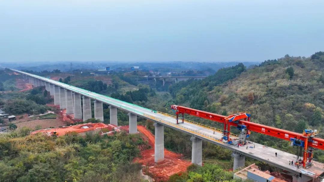 另悉,11月29日,成渝中线高铁四川段4标最后一孔正线箱梁精准架设在了成简快速路特大桥92至93号桥墩,标志着该标段467孔正线箱梁架设任务圆满完成。